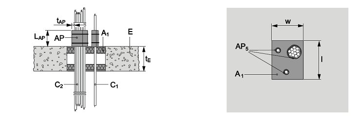 Haces de cables, diámetro máximo de cada cable 21 mm, con o sin soporte de cables.
