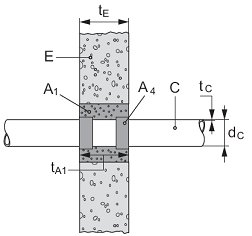 Abrazadera Intumescente Hilti CFS-C y disposición lineal; en caso de encontrarse